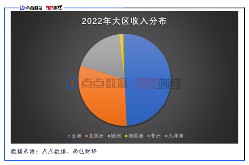 收入的区域分布方面,《万国觉醒》在亚洲的收入在6大洲中最高。点点数据显示,2022年,《万国觉醒》在亚洲的收入约1.92亿美元。