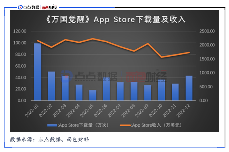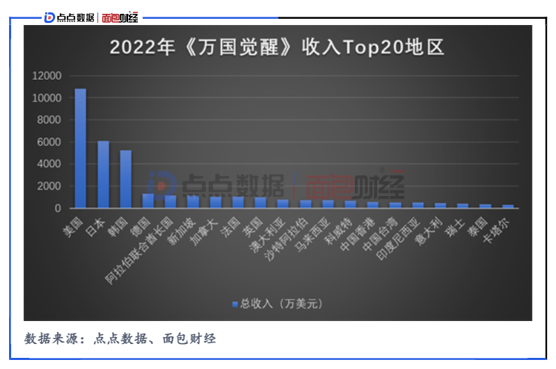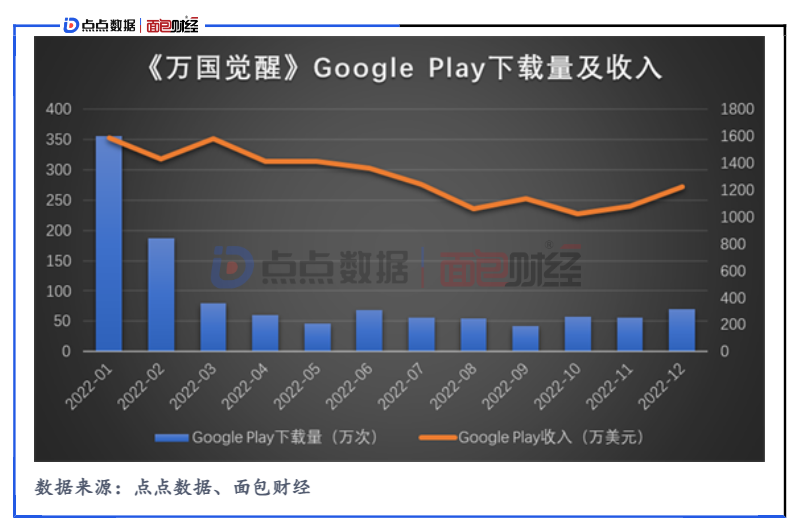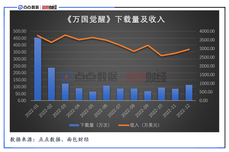 点点数据&面包财经:《万国觉醒》2022年出海收入超4亿美元