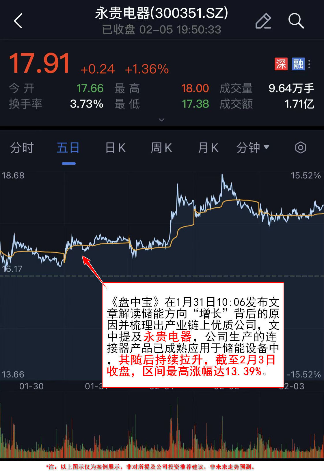 《盘中先手》在1月31日10:06发布文章《多家公司净利润增速超100%,该行业高增长势头亮眼》解读储能方向“增长”背后的原因,文中指出: