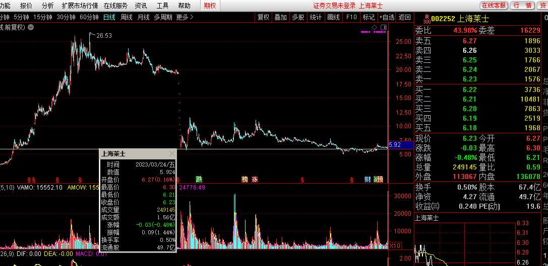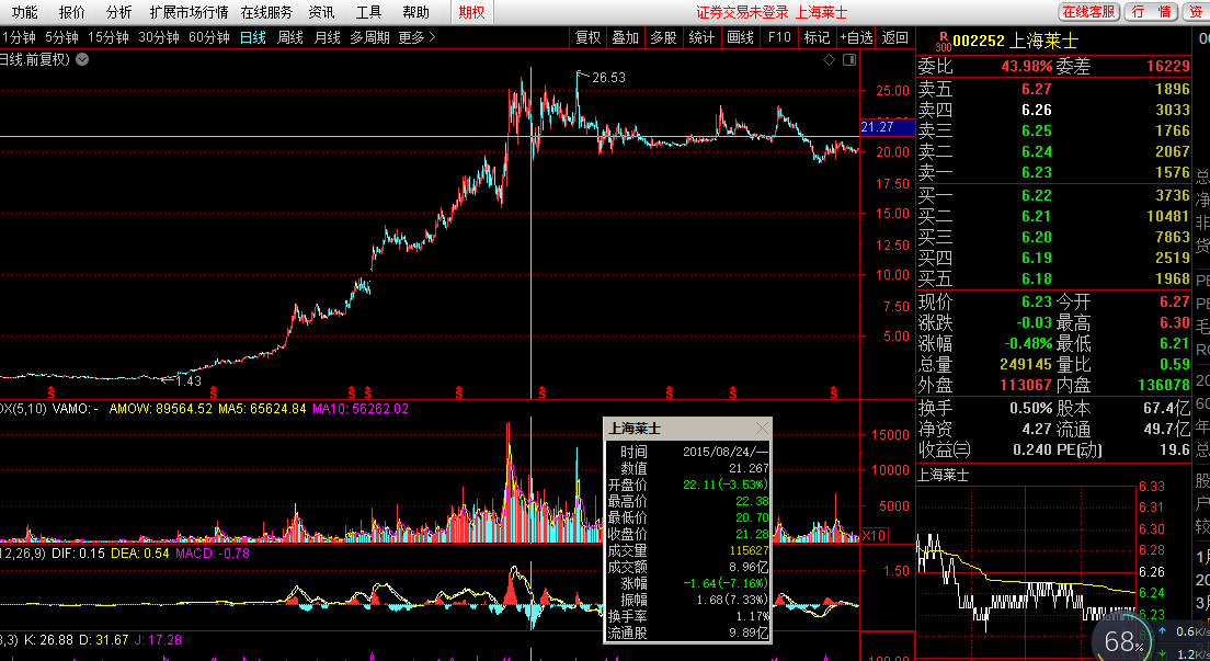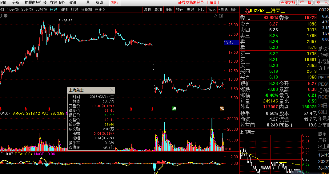 上海莱士,便是当年它小阴小阳升起来的,在低位的时候,一天都是成交千万级的。