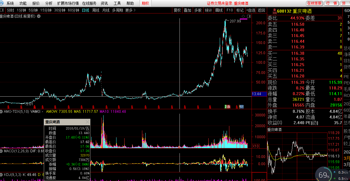 看看,重庆啤酒,多少倍了?