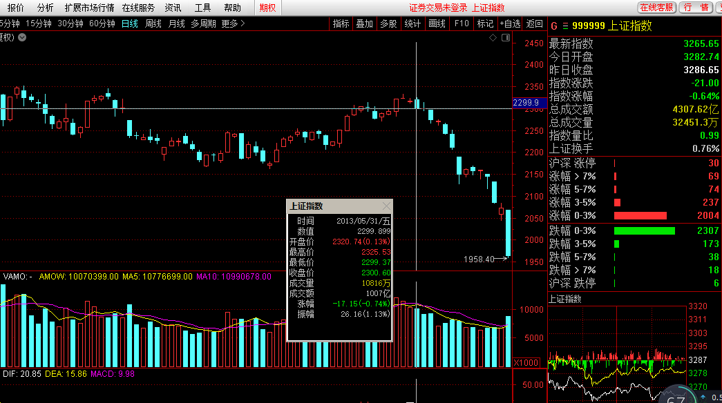 2013年年中,钱荒,造成指数下杀。如图,也是很惨烈的。