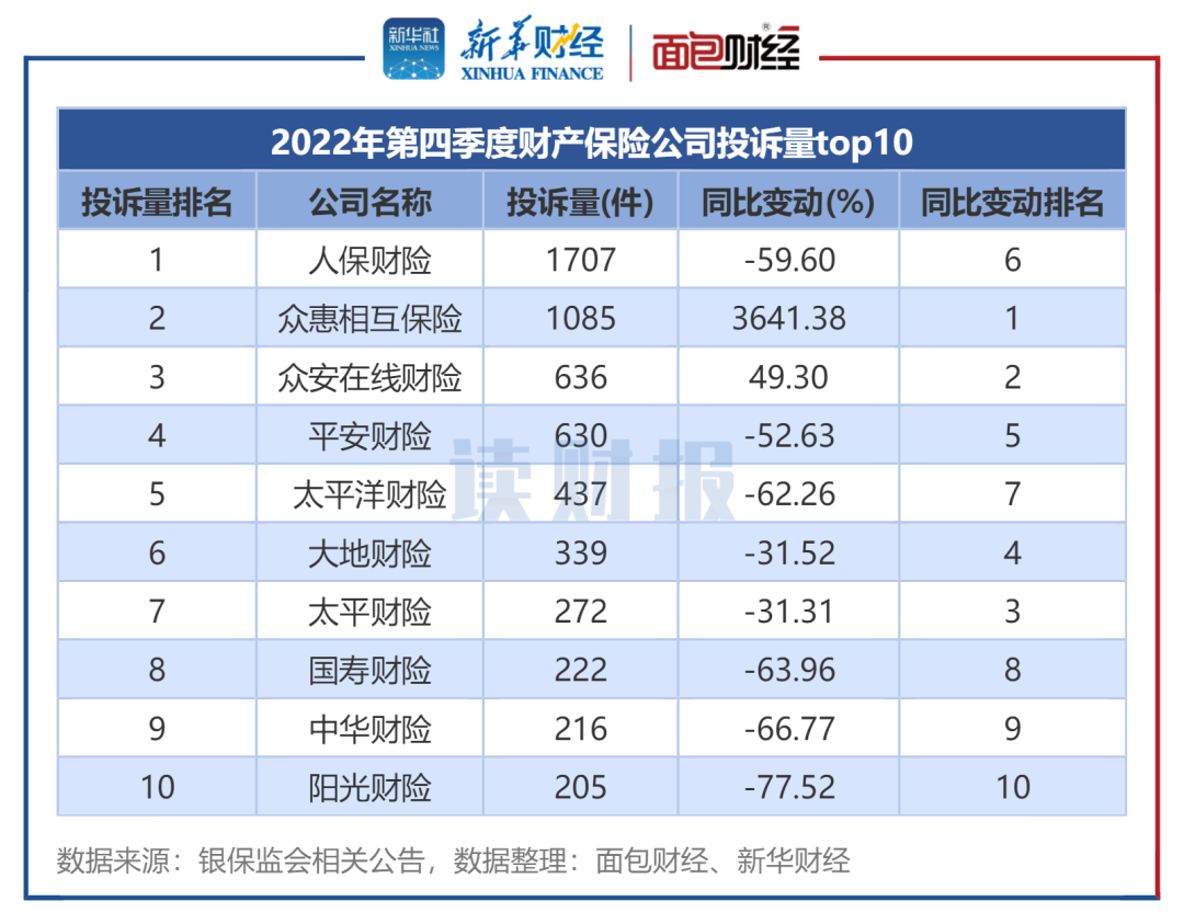 图4:2022年第四季度财产保险公司投诉量top10