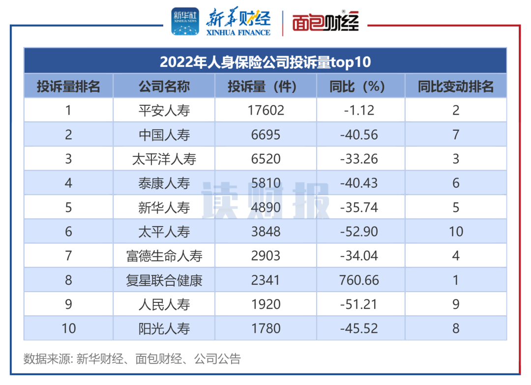 图3:2022年人身保险公司投诉量top10