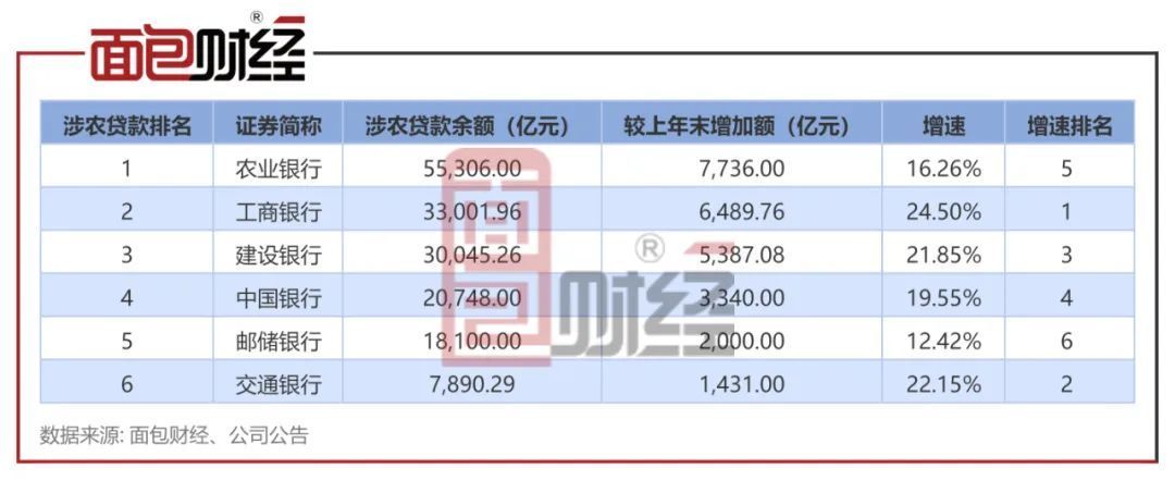 国有银行涉农贷款透视:交行余额最低,邮储银行增速倒数第一
