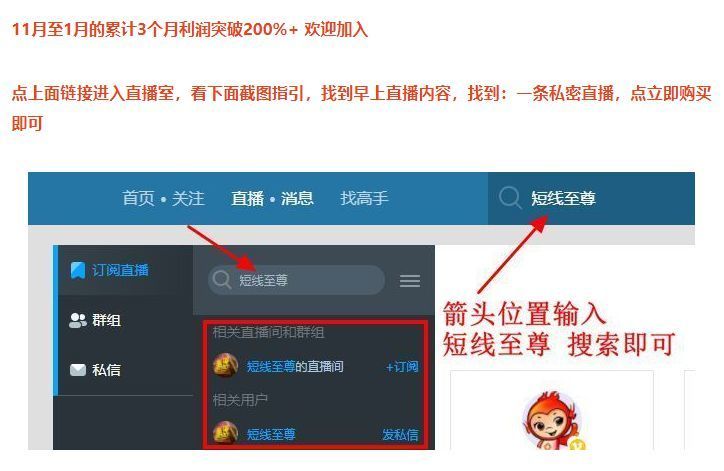 由于苹果手机要加收30%的税费,而且苹果系统订阅不了这里的VIP服务,所以请苹果手机用户移玉步,要电脑打开网页搜索 短线至尊 进入直播室,然后找到早上9点半的 一条私密直播,点立即购买,即可 盘中 同步 收到信息了。有明确价格和苍位信息的哦