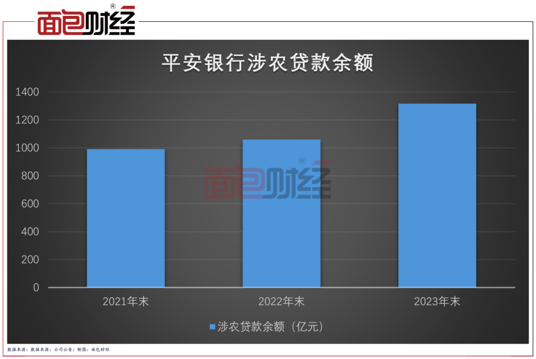 另外,平安银行融合“金融+科技”力量,形成支持乡村振兴服务模式,并制定行制定《乡村振兴金融三年(2023—2025年)发展规划》。2023年,该行投放乡村振兴支持资金371.09亿元,累计投放1063.63亿元,惠及农户6.74万人,累计惠及109.74万人;2023年末,涉农贷款余额1316.80亿元,同比增加256.72亿元,增速24.22%。