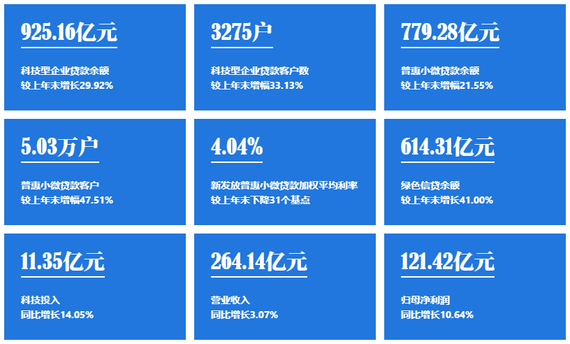 在经营业绩稳健增长的同时,沪农商行围绕“五篇大文章”,在科技金融、普惠金融、绿色金融、数字金融及养老金融方面稳中有进,不断提升服务实体经济质效,进一步夯实在相关经营特色领域的业务优势。