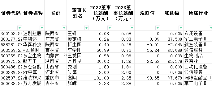 麒盛科技董事长唐国海也不遑多让,年薪由2022年的1.7万元上涨至2023年的201.84万元,同比增长11772.94%。