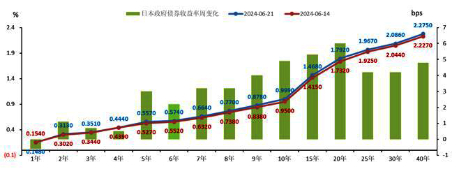 图17:6月14日与6月21日日本政府债券收益率周变化情况
