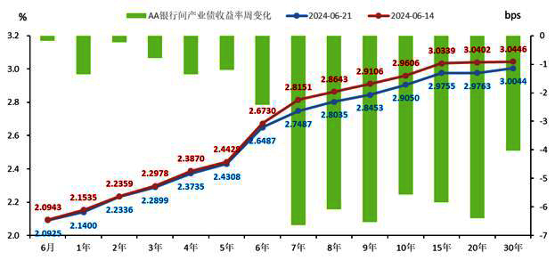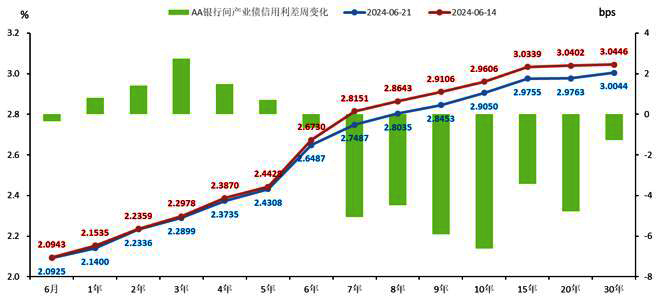 图23:6月21日与6月14日AA产业债收益率曲线变化情况