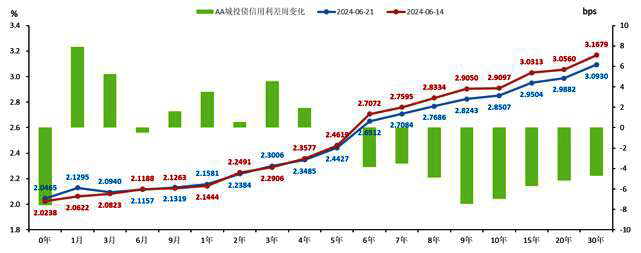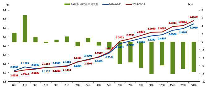 图28:6月21日与6月14日AA城投债收益率曲线变化情况