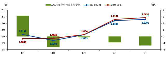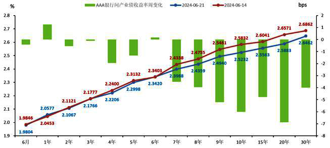 图25:6月21日与6月14日AAA产业债收益率曲线变化情况