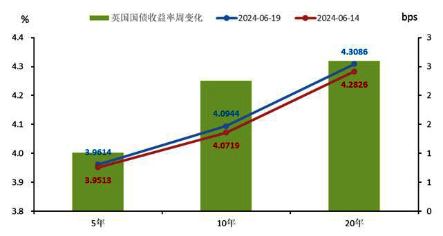 英国国债收益率上行为主(截止6月19日,相对一周前的6月14日)。