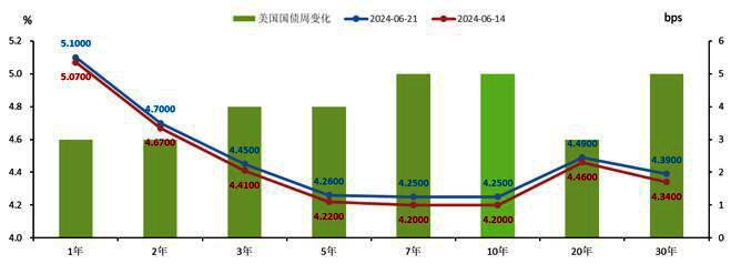 图15:6月21日与6月14日美国国债收益率周变化情况