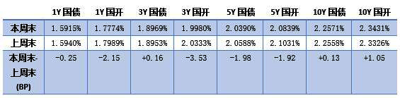 (2)现券方面,国债/国开债各期限收益率走势,环比上周,均以下行为主。