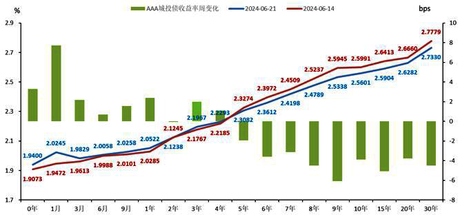 图30:6月21日与6月14日AAA城投债收益率曲线变化情况