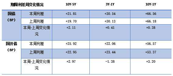 表3:国债、国开债本周与上周关键期限利差变化情况
