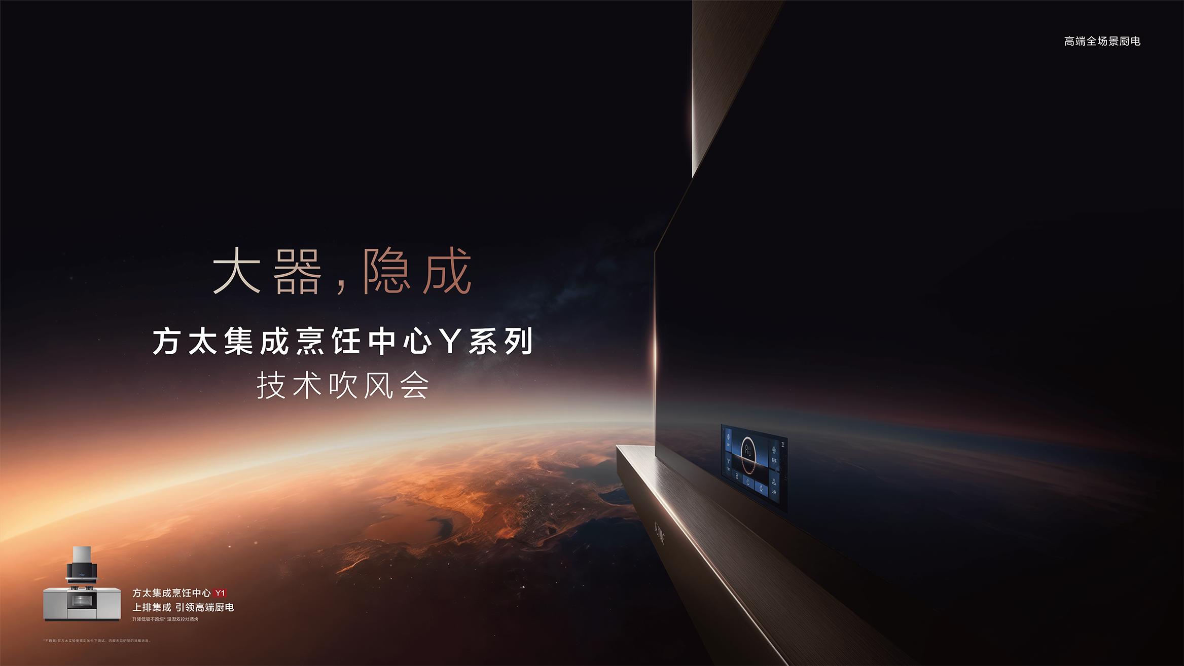 2023年,方太集成烹饪中心Y系列提出“嵌隐”理念,创新无级升降等技术,开创厨具“真隐”时代。