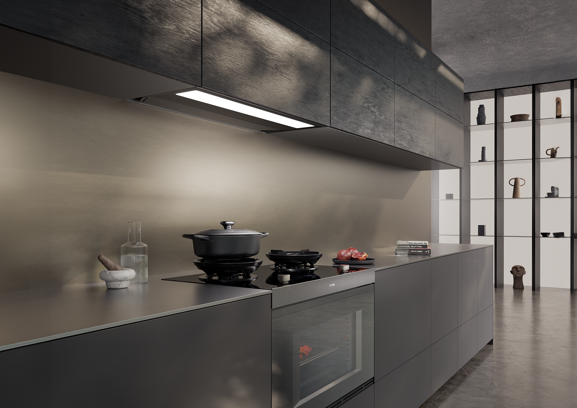 具体到厨居,要实现更好更真的“隐”,就要追求烟机在非工状态下“正视,隐匿无形”、“仰视,极致纯平”的绝佳效果。