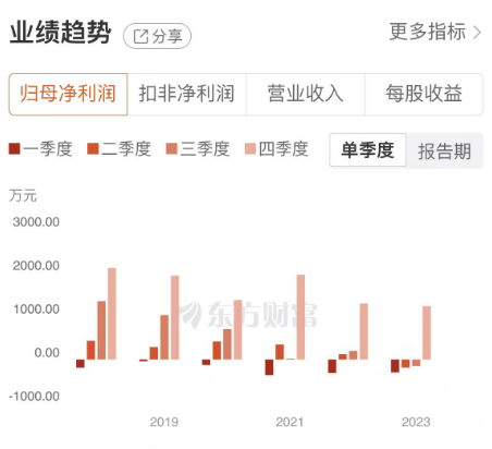 更令人遗憾的是,三晖电气近6年的净利润连续下滑。2018年至2023年,三晖电气归母净利润分别为3677.17万元、3186.35万元、2342.43万元、1950.50万元、1294.47万元、591.12万元。并且,该公司每年各个季度的利润变化都很大,实现盈利基本都要靠第四季度。