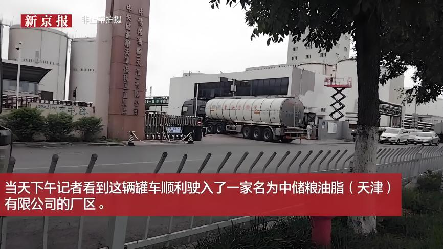 当天下午,这辆油罐车驶入中储粮油脂(天津)有限公司的厂区。大约40分钟后,装满油驶出。