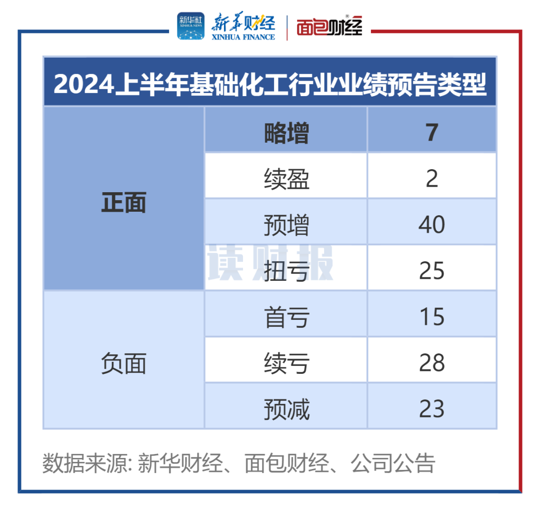 统计数据显示,截至2024年7月18日,基础化工行业所有公布业绩预告的公司中有43家预告亏损。