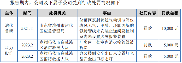 2021年—2023年,科力股份及其子公司多次因安全生产问题受到行政处罚。