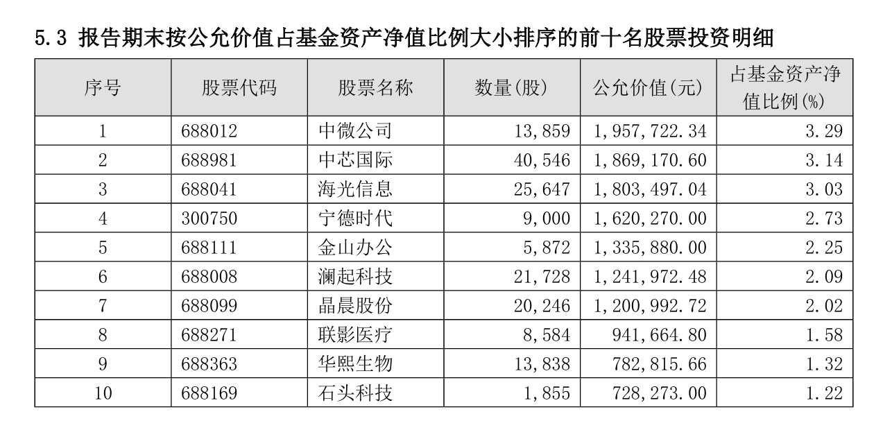 2024年二季度末,基金重仓股包括中微公司、中芯国际、海光信息等企业,其中中微公司、中芯国际的重仓时间相对较久。截至2024年8月12日收盘,中微公司、中芯国际年内股价出现下跌,石头科技、金山办公等新重仓股票三季度以来跌幅超过了15%。