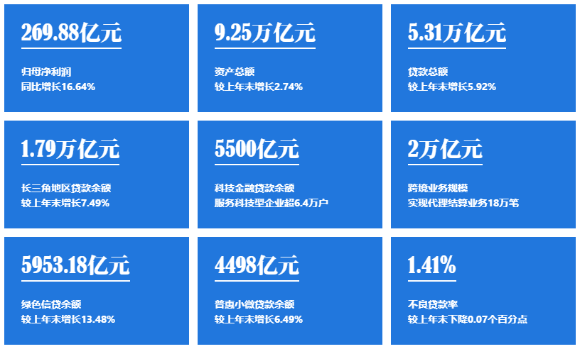 报告期内,该行在绿色信贷领域信贷投放增长较快。截至报告期末,该行绿色信贷余额5953.18亿元,较年初增长13.48%,其中,长三角区域绿色信贷余额2494.62亿元。