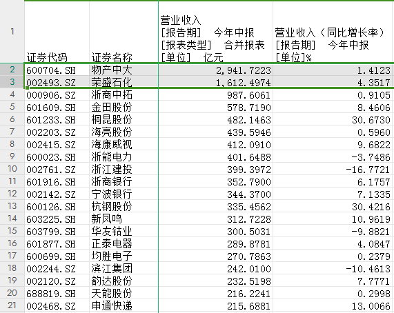 同花顺数据显示,在今年上半年的营收20强榜单中,物产中大、荣盛石化依然是老大、老二,营业收入规模超过千亿。浙商中拓位居第三,距离千亿界线仅一步之遥。