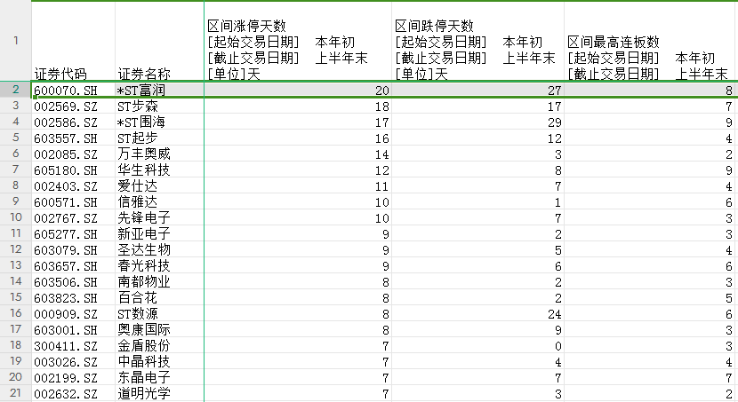 上半年,华生科技、*ST围海、ST元成、*ST富润4家公司最高连板天数均为9天。