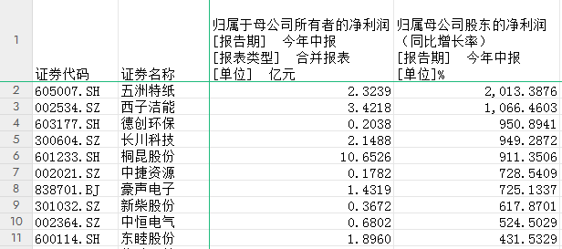 其中,五洲特纸上半年归母净利润2.32亿元,同比增长2013.39%;西子洁能上半年归母净利润3.42亿元,同比增长1066.46%。