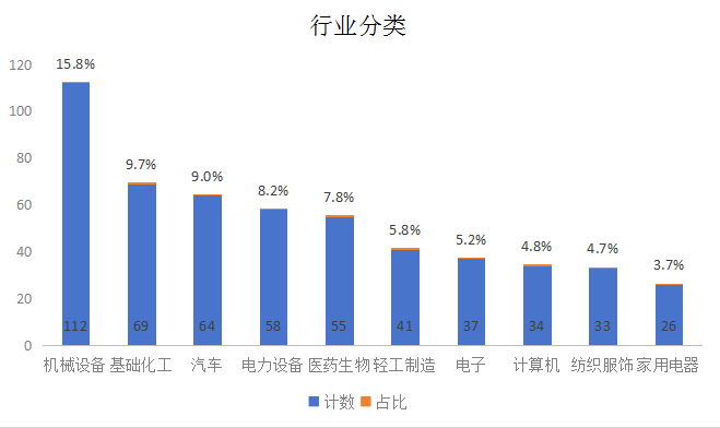 其中,机械设备行业有11家上市公司,占比超过15%。
