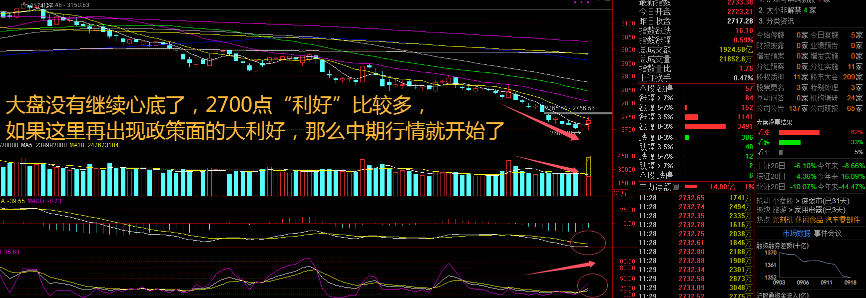 上证指数周四涨逾1%,从跌幅榜来看,石油、煤炭、交通、航空、石油,前五皆是蓝筹板块,然而市场出现了普涨行情,说明场内资金还是更偏爱于超跌的中小盘股。中秋假期期间港股及主要海外市场均有较好表现,外部环境对A 股影响偏积极,后市重点关注国内稳增长政策落实力度及节奏,关注财政支出进展,以及美联储降息节奏对我国货币政策、汇率、资本市场的边际影响。接下来注意上证指数能否在2730点之上稳住。