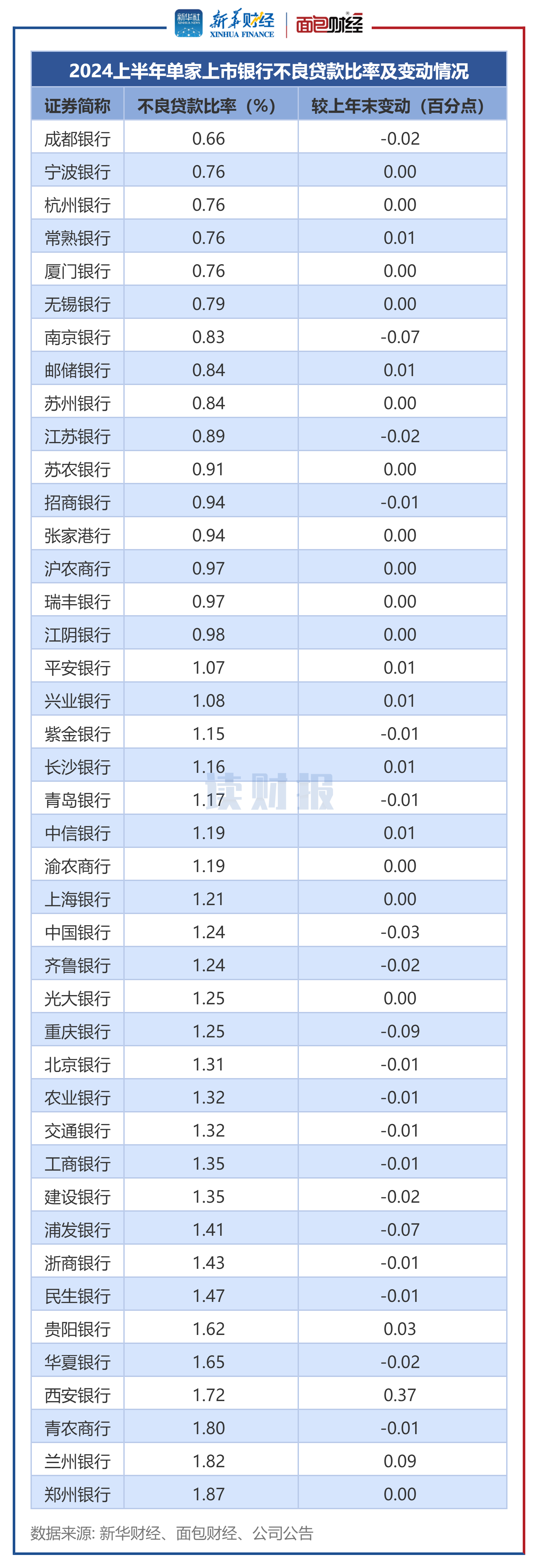 图3:2024上半年单家上市银行不良贷款比率及变动情况