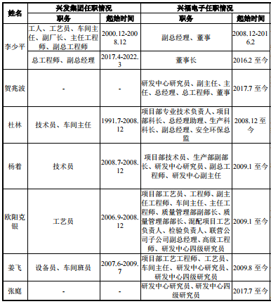据披露,公司核心技术人员均多年从事技术岗位,其中,贺兆波和张庭系2017年博士毕业后入职兴福电子从事研发工作;李少平、杜林、杨着、欧阳克银、姜飞等其他核心技术人员前期均在兴发集团分子公司任职。