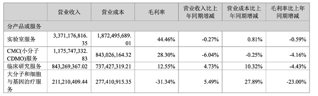 公司的第一大收入及利润来源,占了营收60%的实验室服务业务,2024H1实现收入33.71亿元,同比下降0.27%。其中Q2单季度实现收入17.67亿元,同比增长2.26%,环比增长 10.10%,改善比较明显。公司这块业务的新签订单从Q2起便开始陆续变成营收,因为收入提高,所以毛利也有环比改善,板块毛利率达到 44.74%,较Q1提升 0.60 个百分点。