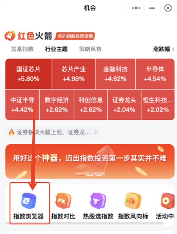 如果自己心中没有目标,那也可以借助首页的“指数浏览器”来辅助我们进行决策。
