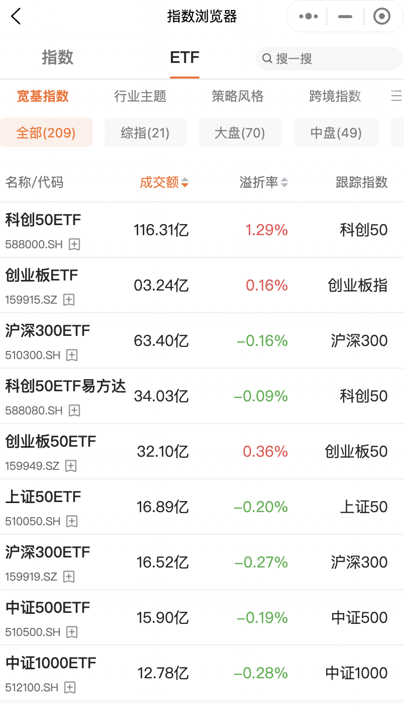 在首页筛选成交额最高的宽基指数ETF如下图所示,还可以查看近1周、近1月以及近3月的阶段涨幅,非常方便,大家也可以点击下面的图片试一下。
