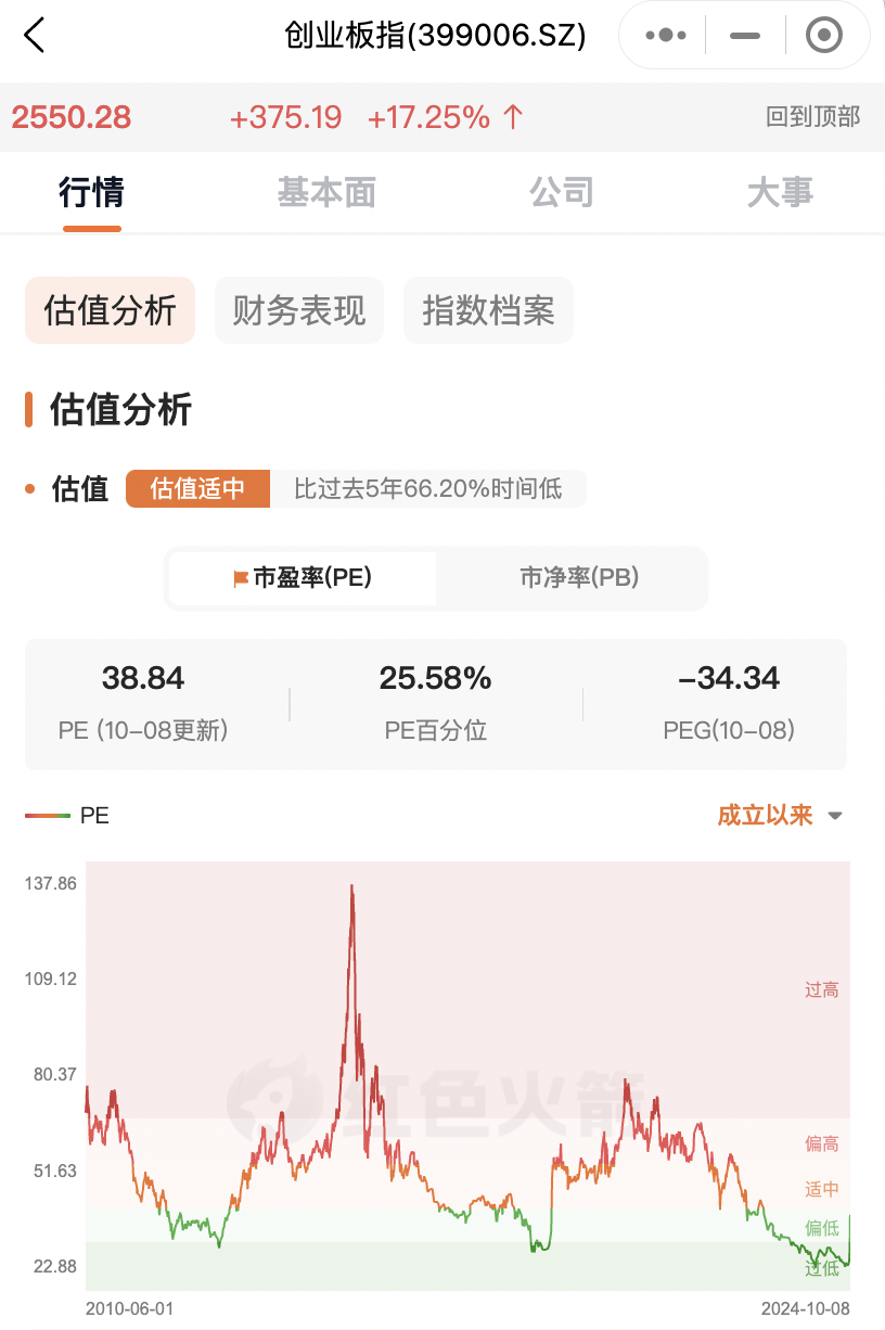 我们看创业板,站在五年纬度看,现在的PE38.84倍,比过去五年66.2%的时间都低,拉长到10年纬度看,现在也就是历史PE百分位的25.58%,仍然处在非常低估的区间里。