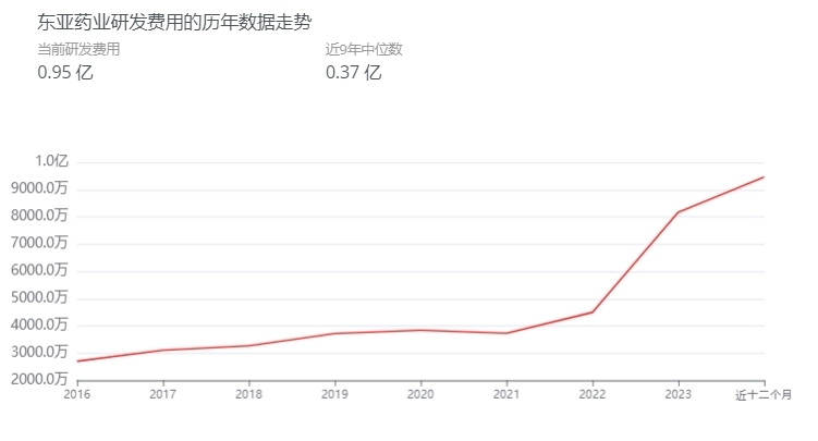 财报数据显示,2021年至2023年,东亚药业研发费用分别为0.37亿元、0.45亿元和0.82亿元。2024上半年,东亚药业研发费用为0.44亿元,同比大幅增长了41.97%,加大研发也使公司主要药物产品销量得到增长。