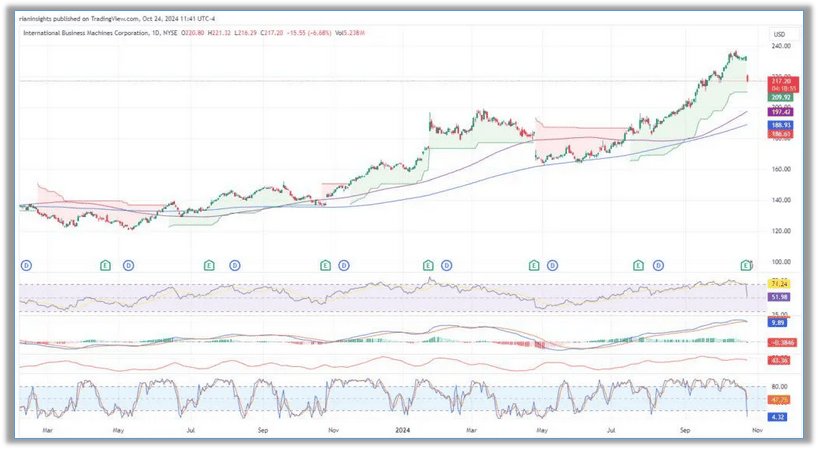 从技术面来看,在第三季度业绩公布之前,IBM的股价曾一度上涨到了在234美元,但一直未能突破240美元大关。