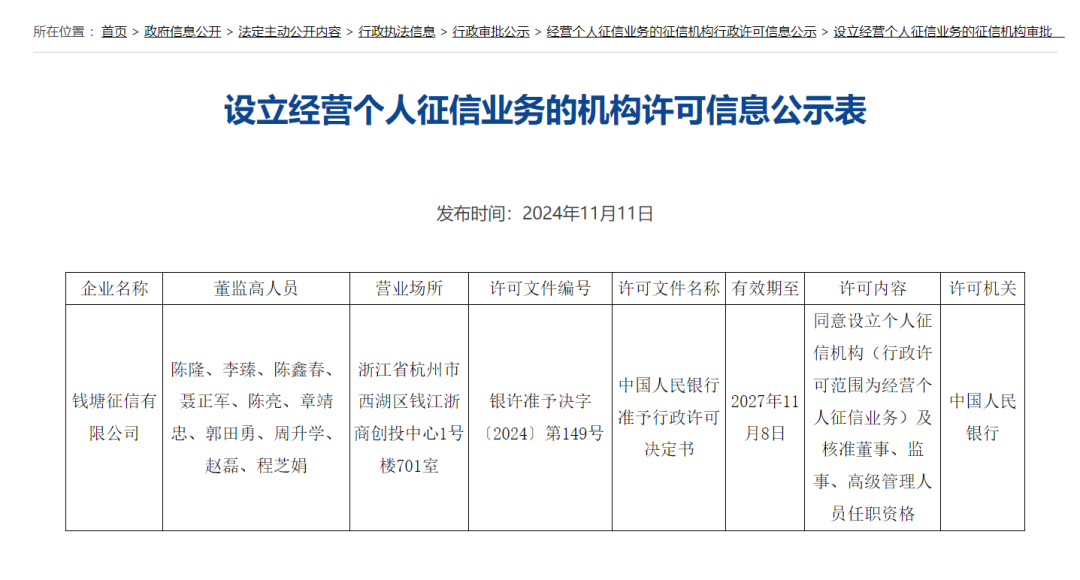 说到政策面,近期一个变动是:个人征信牌照,钱塘征信“虽迟但到”。