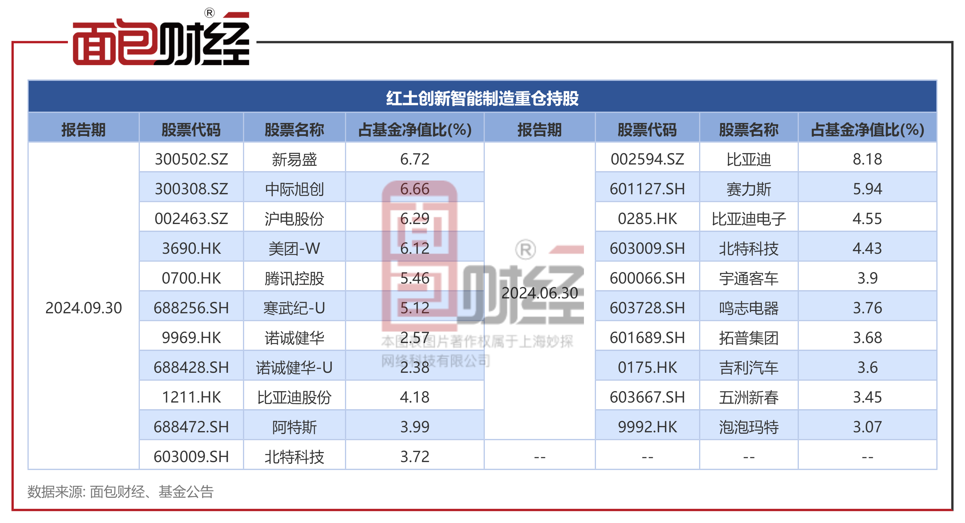 值得关注的是,2024年二季度末盖俊龙旗下红土创新新科技就已重仓新易盛及中际旭创,而上述两股于三季度末才在红土创新智能制造的重仓名单中。2024年上半年,新易盛、中际旭创已分别上涨114.01%、70.41%。