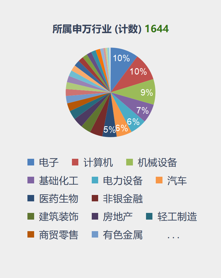 分行业来看,电子行业实现连板个股数量最多,为167只,占比10.1%;计算机行业排名第二,为165只,占比10.0%;机械设备行业排名第三,为152只,占比9.2%;基础化工行业排名第四,为112只,占比6.8%;电力设备行业排名第五,为99只,占比6.0%。