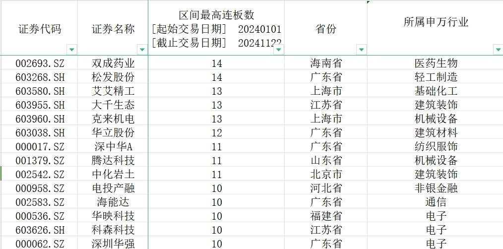 聚焦到地方来看,浙江省实现连板的个股数量为197个。