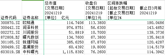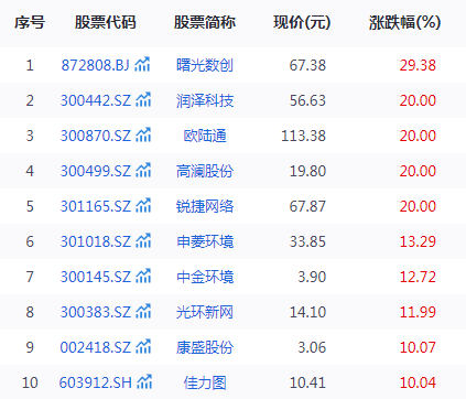 从区间涨幅情况看,今年以来,已有欧陆通、润泽科技、锐捷网络、高澜股份等7家公司涨幅已超100%。