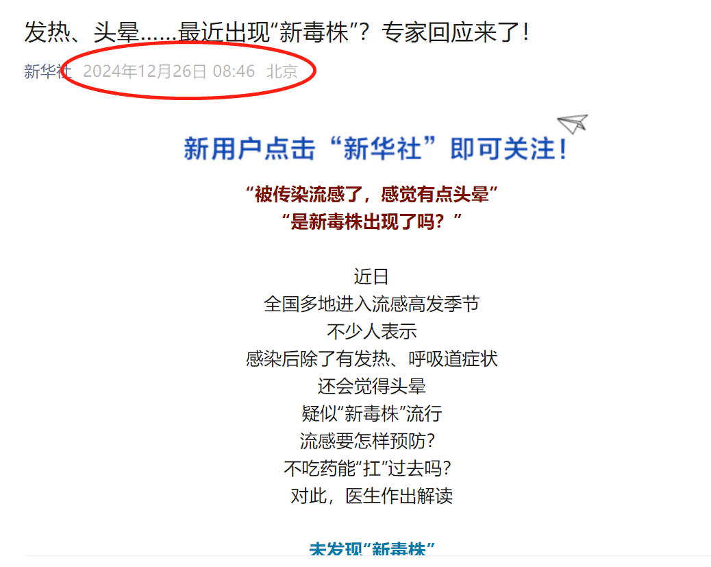 另外,最近流感比较厉害,大家一定要注意安全,特别是小孩儿。今天早上新华社就做了一个届时,跟大家说明这不是变异毒株,而是甲流: