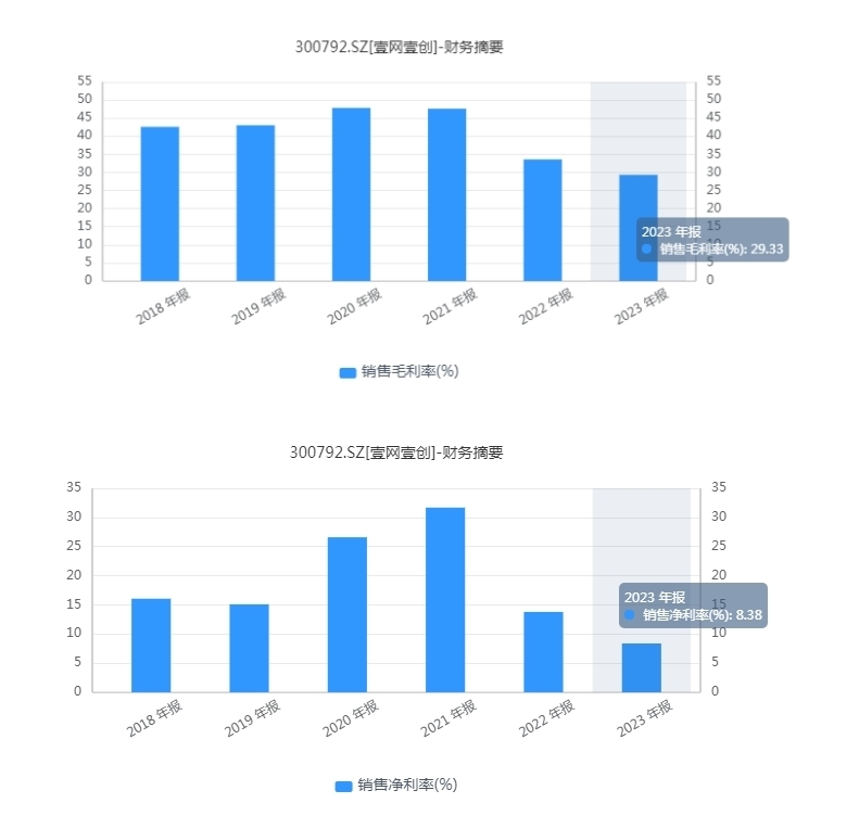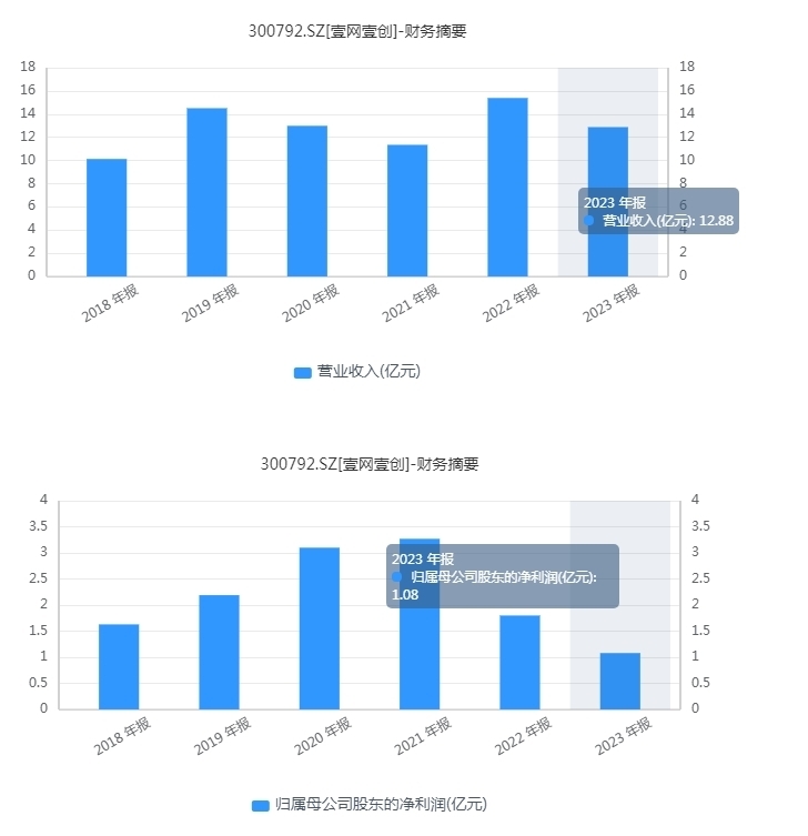 大势之下,壹网壹创也无法摆脱业绩持续下滑的厄运。2018-2023年,公司营业收入增速起伏不定,净利润则是持续快速下降。